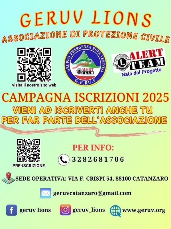 Benvenuto nella nuova Campagna Iscrizioni 2025 del GERUV LIONS, l'Associazione di Protezione Civile che opera con passione e dedizione per il bene della comunità! Se hai sempre desiderato contribuire in prima persona e fare la differenza, è il momento giusto per unirti a noi.